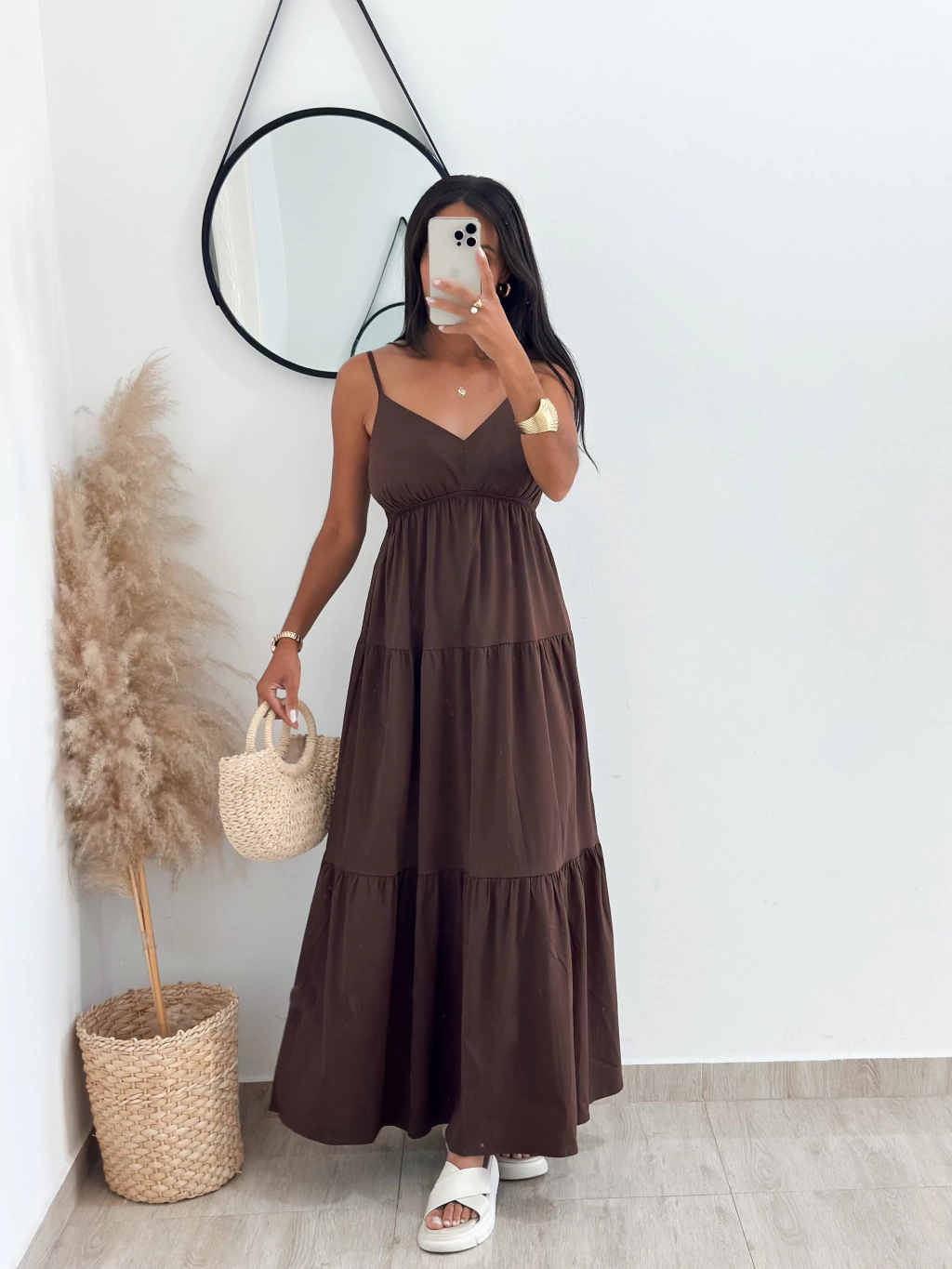 A modelo usa tamanho P/M e veste manequim 36.